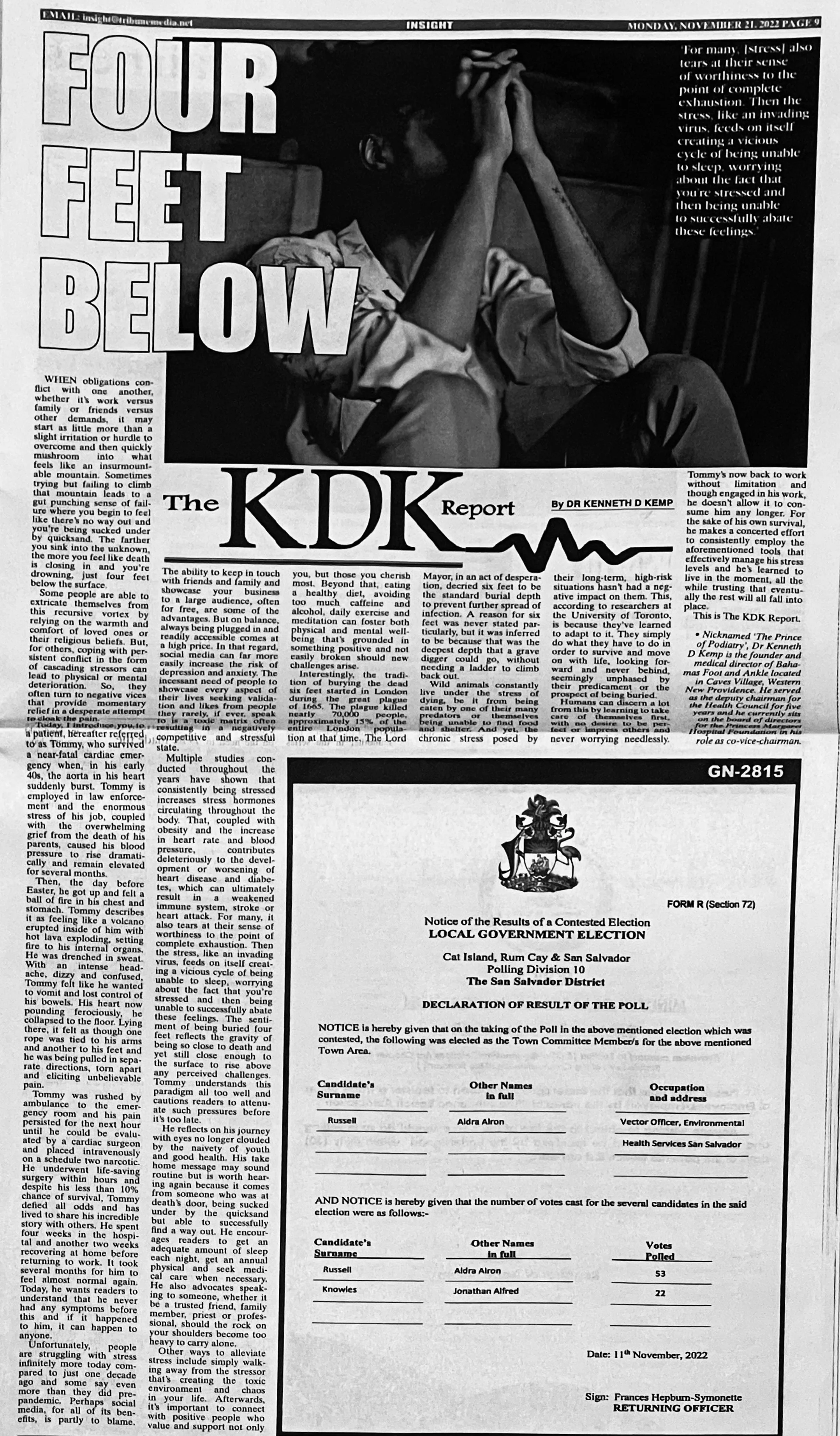 He reflects on his journey with eyes no longer clouded by the naivety of youth and good health. His take home message may sound routine but is worth hearing again because it comes from someone who was at death’s door, being sucked under by the quicksand but able to successfully find a way out. He encourages readers to get an adequate amount of sleep each night, get an annual physical and seek medical care when necessary. He also advocates speaking to someone, whether it be a trusted friend, family member, priest or professional, should the rock on your shoulders become too heavy to carry alone